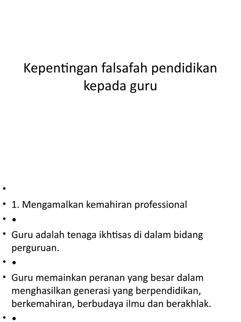 Sebagai seorang guru, penting untuk kita memahami dan menghayati falsafah pendidikan kebangsaan dan disini saya ingin membincangkan tentang apakah kepentingan falsafah pendidikan terhadap sesebuah negara.apakah yang dimaksudkan dengan falsafah pendidikan. Kepentingan falsafah pendidikan kepada guru. •guru memainkan peranan yang besar dalam menghasilkan generasi yang berpendidikan,berkemahiran,ber budaya ilmu dan berakhlak. Mengamalkan kemahiran professional guru adalah tenaga ikhtisas di dalam bidang perguruan. Kepentingan falsafah pendidikan kepada guru ialah. Ciri ciri kemanusiaan yang kelihatan dari pancasila ialah integral etis dan religius soeyatni poeposwardoyo 1989. Pendidikan secara tidak langsung menentukan corak serta mutu kehidupan manusia. • /eseorang guru untuk belajar supaya dapat menguasai teknologi maklumat dan komunikasi agar sistem pembelajaran pelajar tidak berpusatkan kepada buku teks semata!mata. Pendidikan yang berkesan bakal melahirkan bangsa yang mempunyai jati diri yang kuat dan mulia. Kepentingan falsafah kepada guru, topik 3: Guru memainkan peranan yang besar dalam menghasilkan generasi yang berpendidikan, berkemahiran, berbudaya ilmu dan berakhlak. Mengamalkan kemahiran professional •guru adalah tenaga ikhtisas di dalam bidang perguruan. Menyempurnakan tanggungjawab dan akauntabiliti sebagai insane guru yang sentiasa mencari ilmu serta mengamalkannya bagi memenuhi tuntutan keperluan pendidikan dan masa depan.5.